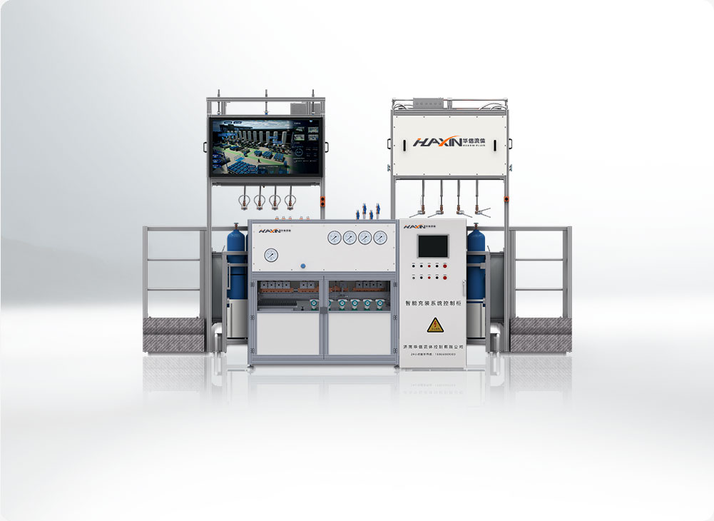 濟南華信根據市場需求陸續推出,單一氣體、兩元至多元混合氣體、可燃氣體、高純氣體等充裝系統。
